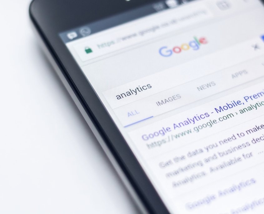 Om dit te bereiken moeten we een paar stappen volgen, waar ik je graag bij wil helpen. Om alvast een beetje inzicht te krijgen zie je hieronder waar een zoekresultaat in Google uit bestaat. In het voorbeeld is de zoekterm ‘Analytics’ ingetoetst.